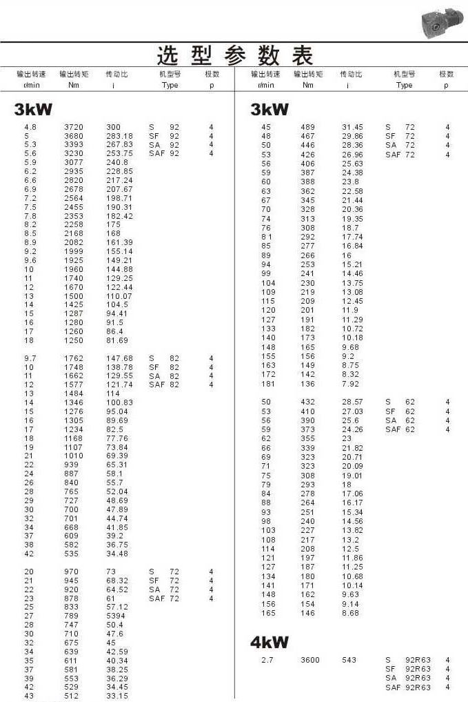 選型參數(shù)表3kW(續(xù))和4kW